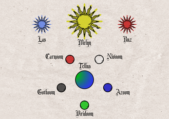 Moon Shadows is the campaign setting where I've been running D&D games for decades. It currently exists mostly in my head. Its physical form is a stack of notebooks and folders stuffed with loose sheets of scrap paper, ragged notepads, and wrinkled sticky notes (also, one chewing gum wrapper). I decided I should try to organize my notes and covert them into a form usable by other people, so I've been typing things out at the Moon Shadows blog and laying out pages in Affinity to make a nice readable book. (The blog doesn't have the ability to leave comments, so this page will also serve as a place for discussion if anyone feels chatty after reading the blog.)